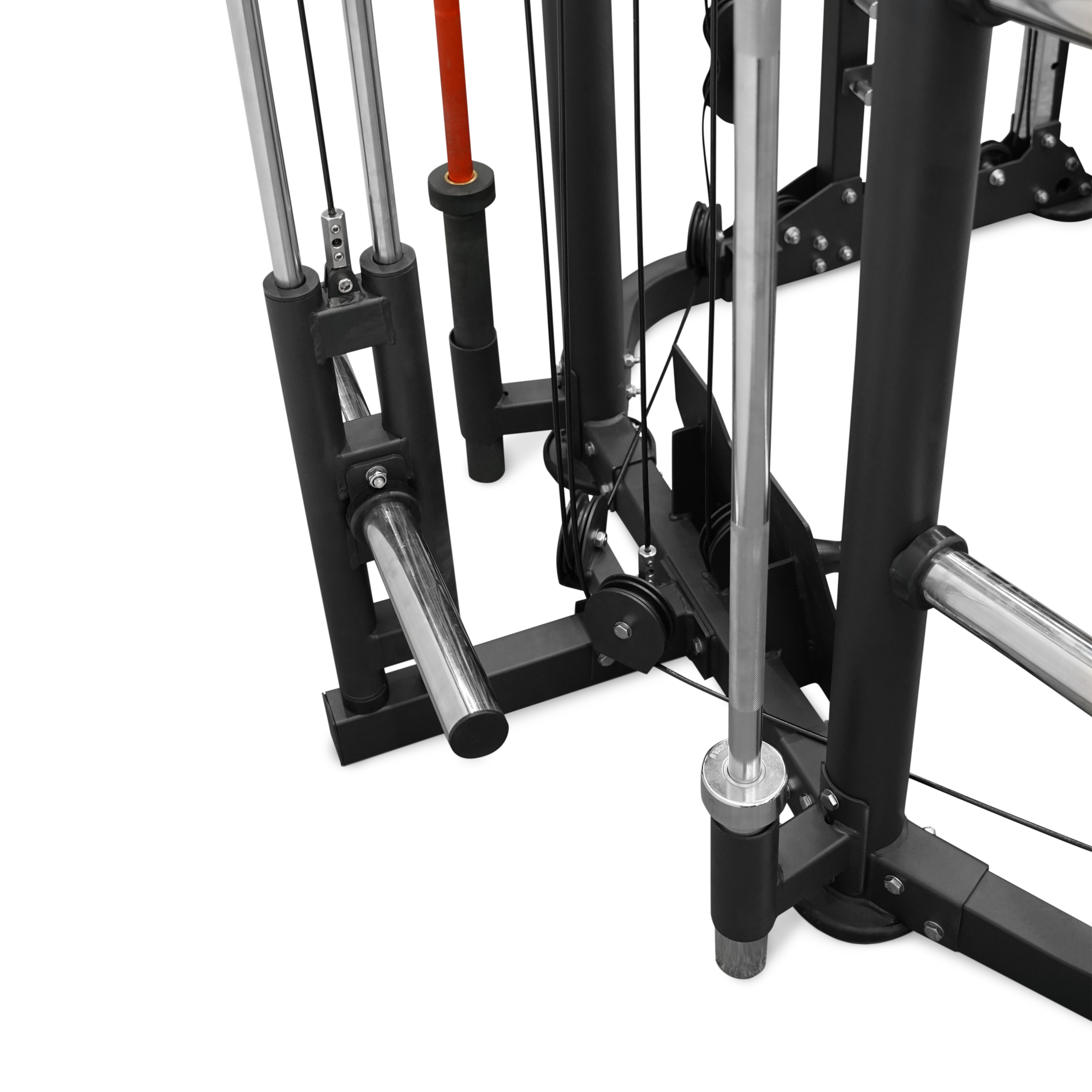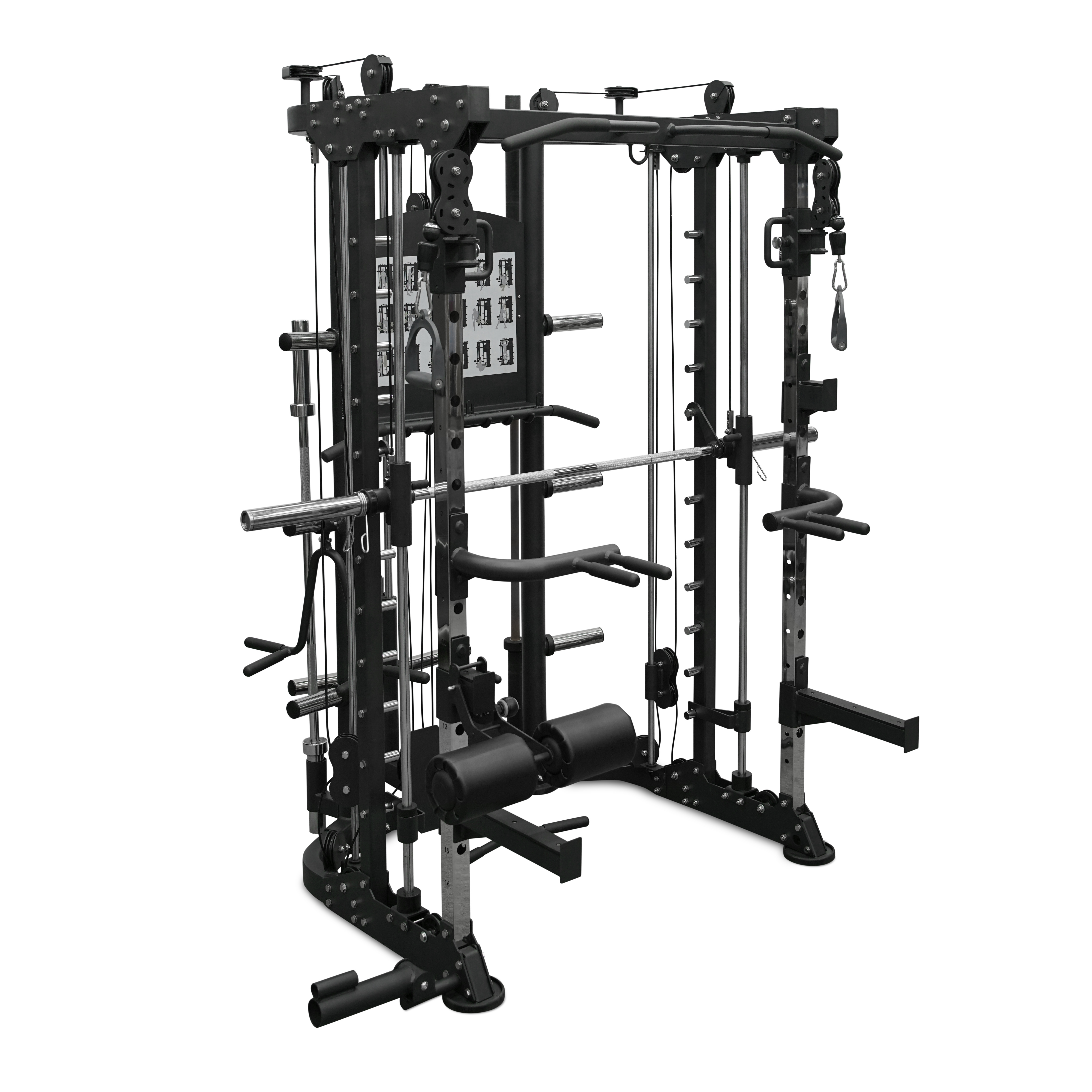 - Многофункциональность: включает машину Смита, тяги, турник, брусья и места для свободных весов.
