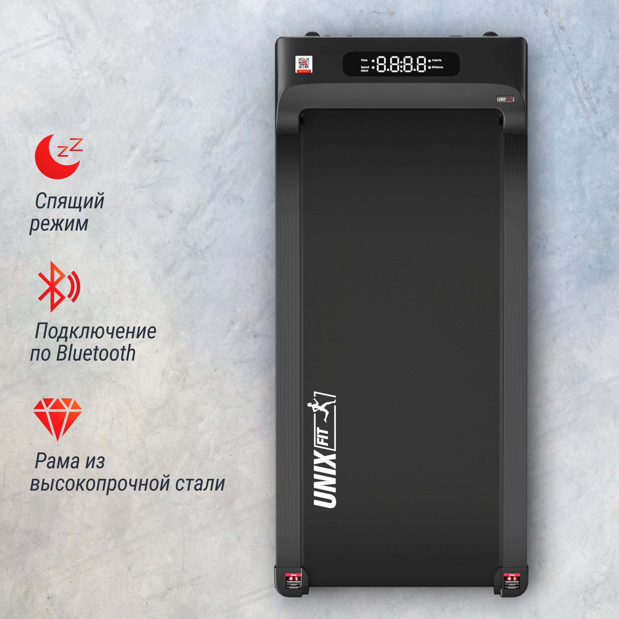- Диапазон скорости от 1.0 до 9.5 км/ч — оптимально для ходьбы и легкого бега;