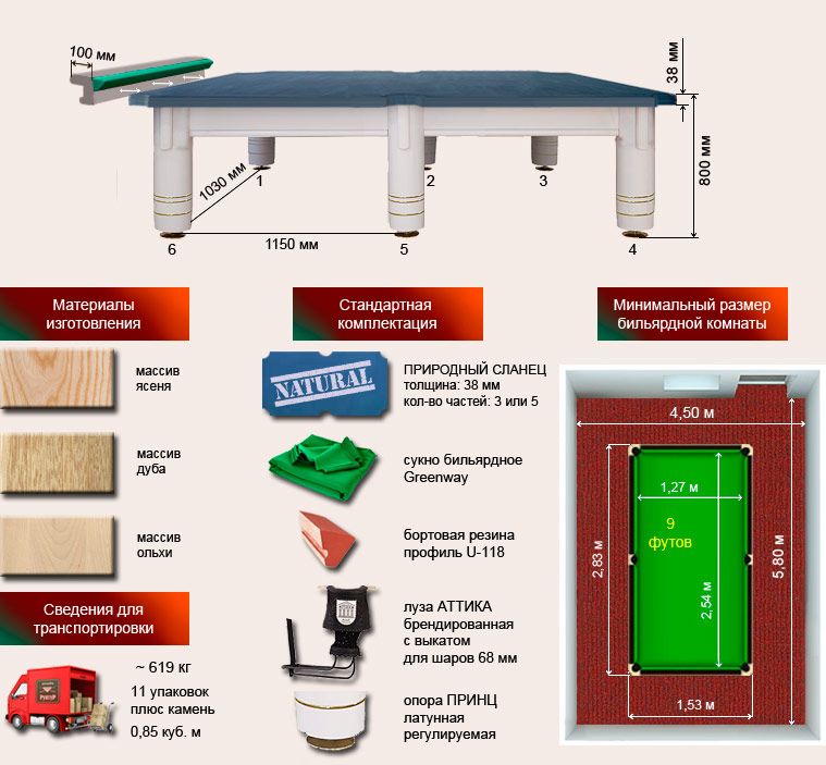 Размер стола | 9 футов |