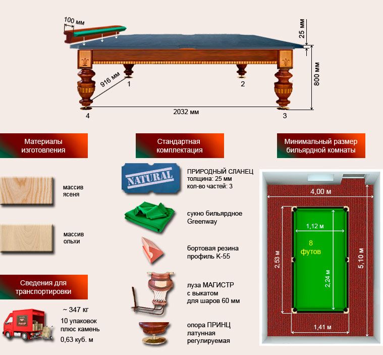 Технические характеристики бильярдного стола «Идальго» (8 футов)