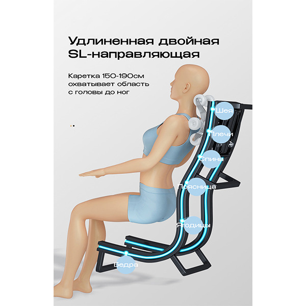 - 3D-массаж с кареткой 1490 мм — полное покрытие спины даже для высоких пользователей